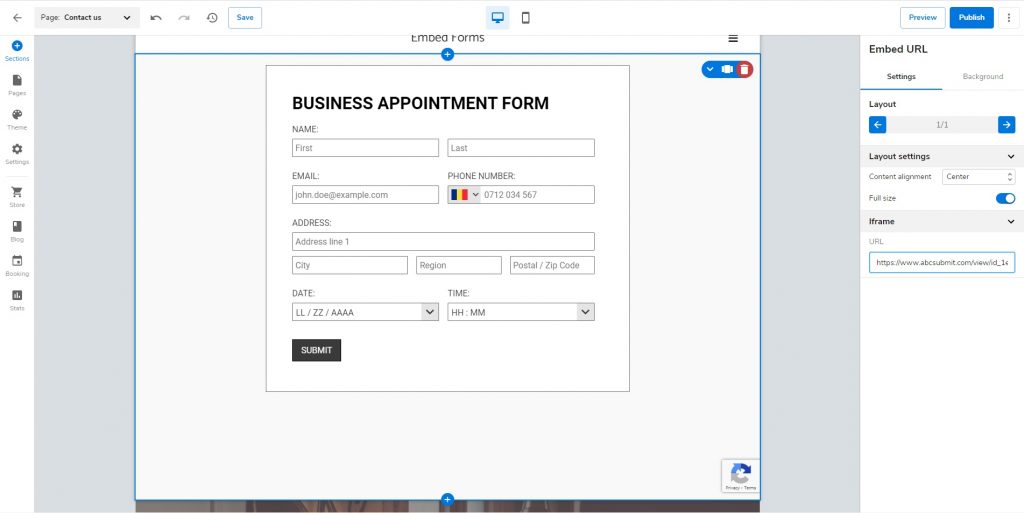 Step 4) Paste your AbcSubmit form link inside the URL setting that is available under Embed URL -> Settings.